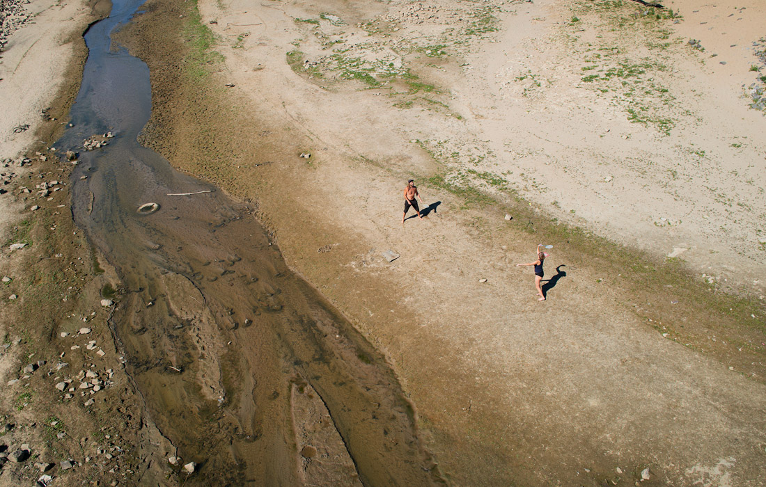 В Нидерландах объявлен второй уровень засухи, что означает "фактическую нехватку воды". На фото: жители играют в бадминтон на берегу реки Ваал в Неймегене, Нидерланды.