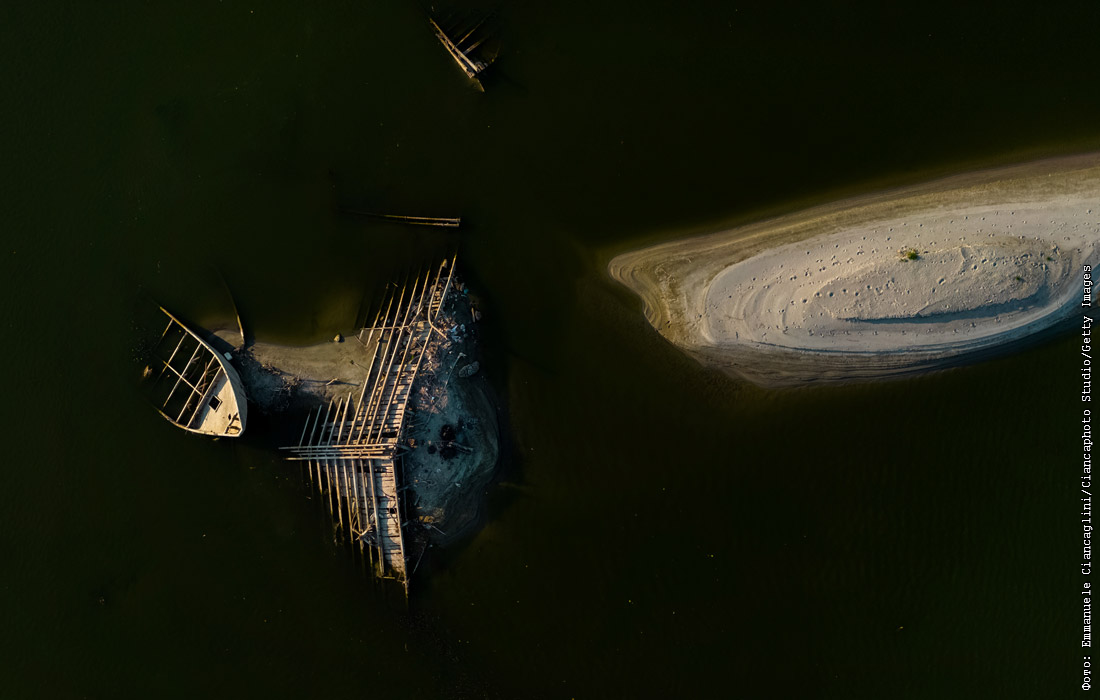 Река По - крупнейшая река Италии и главный источник воды на севере страны - обмелела без дождей