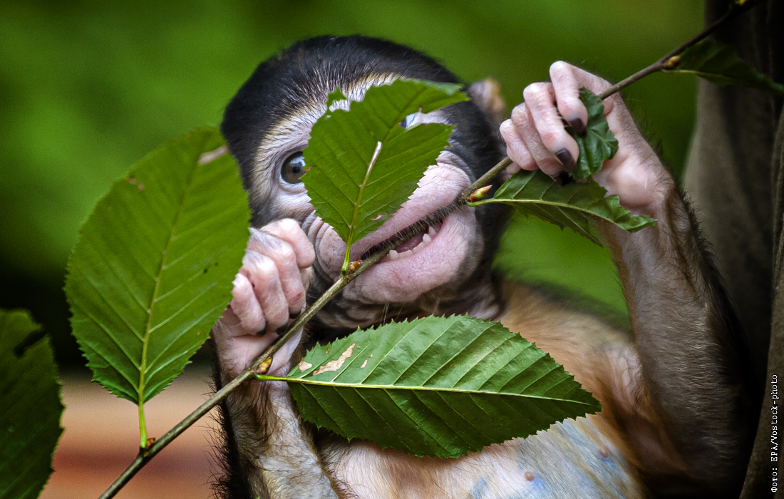Детеныш магота в зоопарке Вроцлава, Польша