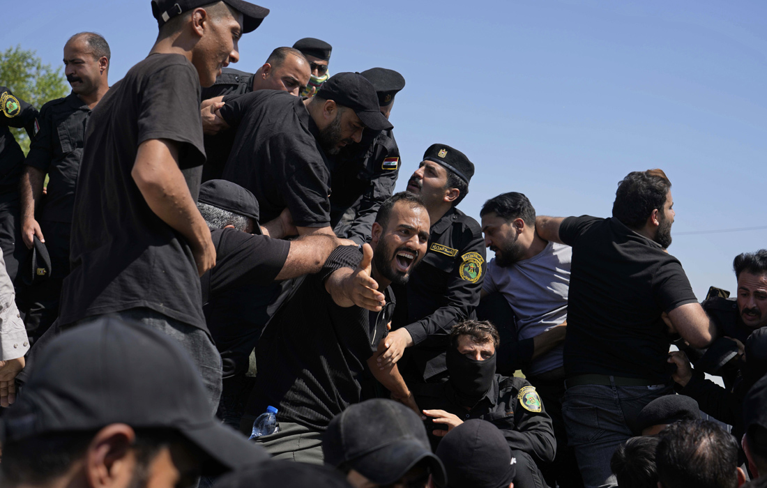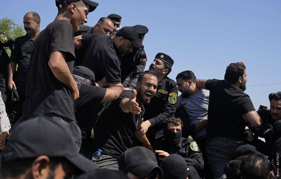 В столице Ирака вспыхнули протесты в связи с уходом из политики влиятельного шиитского богослова Муктады ас-Садра. Сотни людей ворвались во Дворец республики, главное место встреч иракских политиков с иностранными коллегами. После этого власти Ирака объявили на всей территории страны комендантский час, однако протесты продолжились как в Багдаде, так и в других регионах страны.