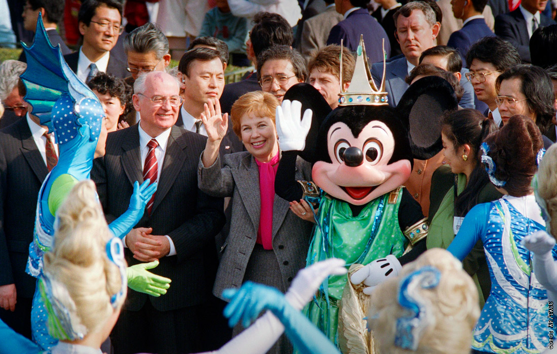 Михаил Горбачев с супругой Раисой Горбачевой посещают Диснейленд в Токио в апреле 1992 года