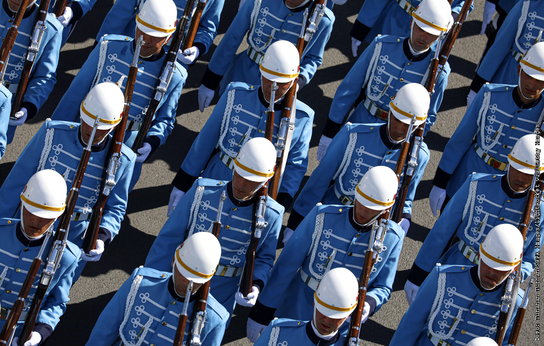 Турецкие солдаты маршируют во время военного парада в Анкаре