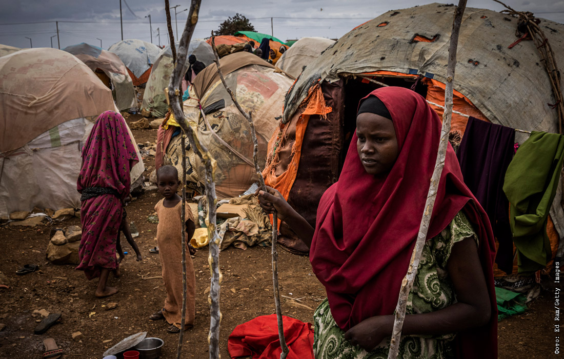 Сильная засуха в Сомали уничтожила посевы и привела к росту цен на продовольствие, в результате чего более 7 миллионов человек оказались под угрозой голода. На фото: лагерь для перемещенных лиц в пострадавшем от засухи Байдоа.