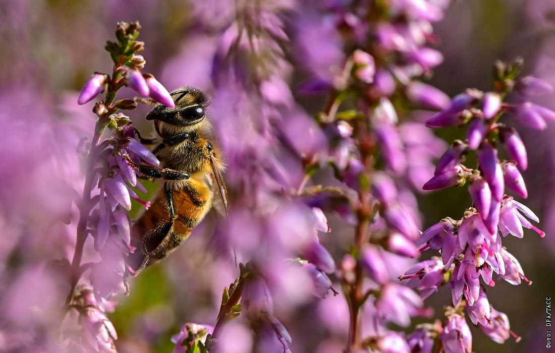Цветение вереска в природном парке Шлаубеталь в Германии