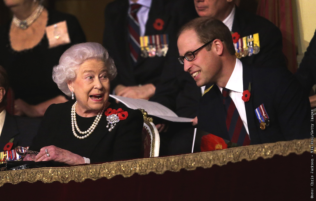 Королева Елизавета II и принц Уильям в Королевской ложе в Альберт-холле. 2015 год.