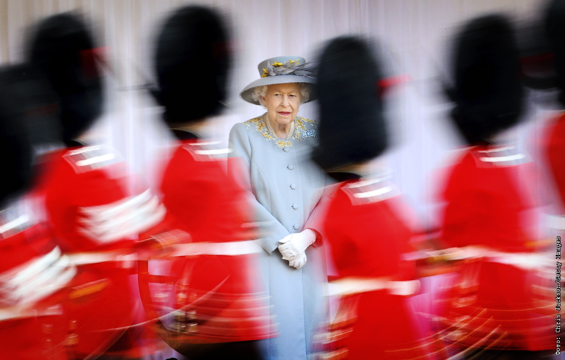 Королева на военной церемонии в Виндзорском замке. 2021 год.