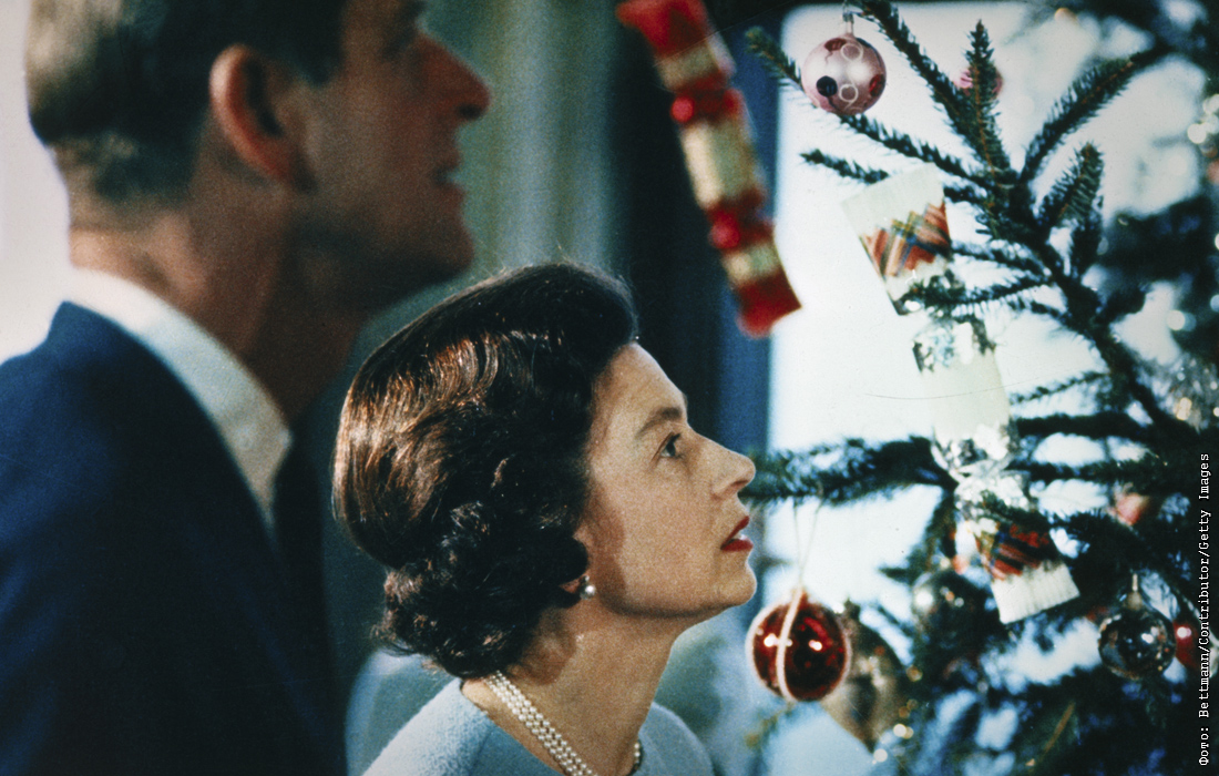 Королева Елизавета и принц Филипп наряжают рождественскую елку в замке. 1969 год.