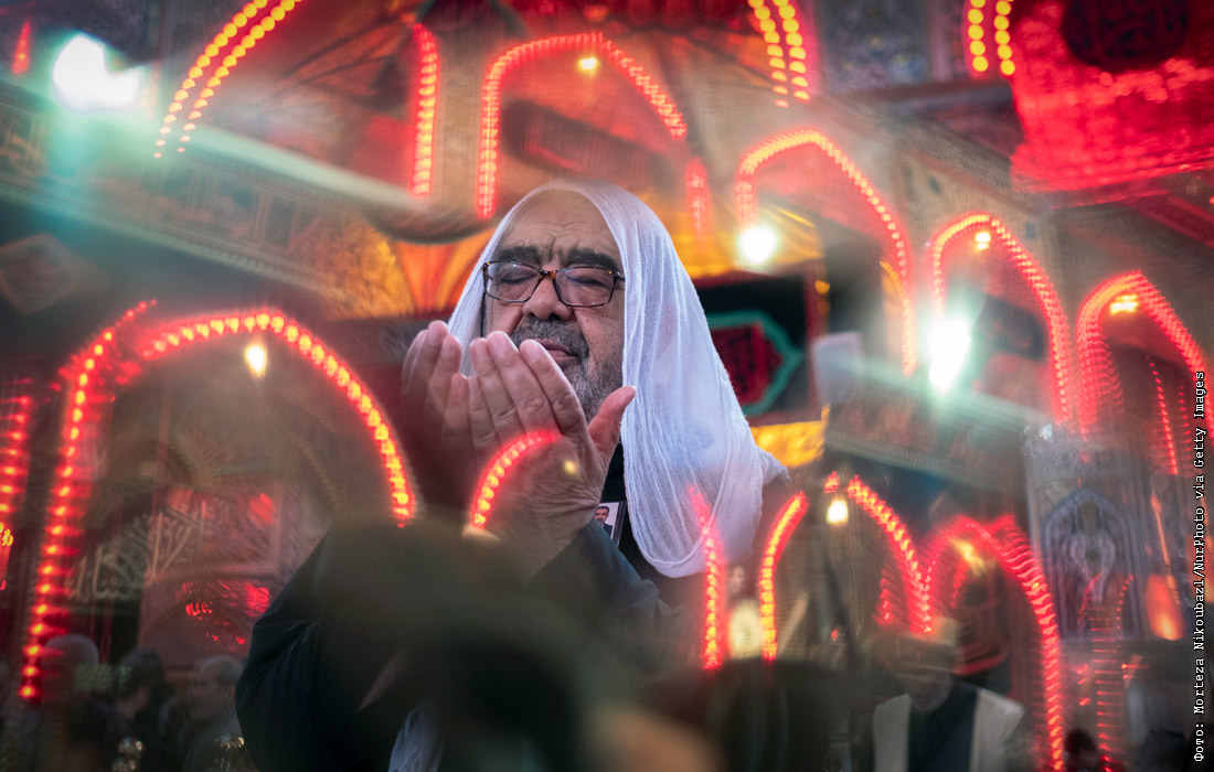 Верующий молится в святилище имама Хусейна в иракском городе Кербела