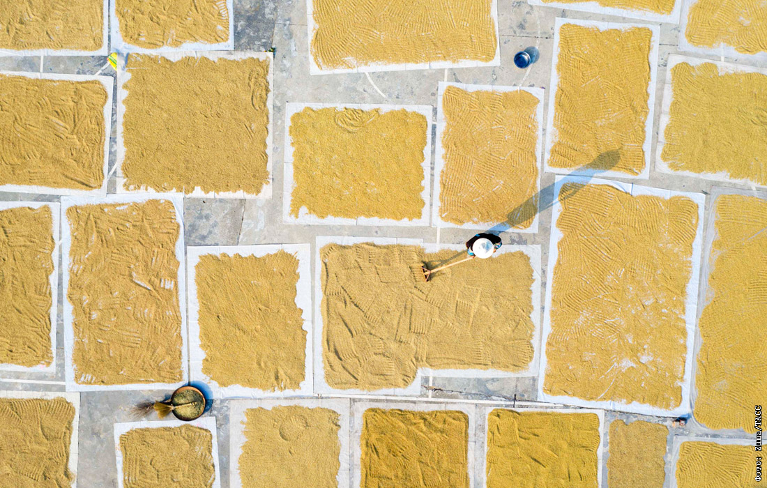 Сушка урожая риса на юго-западе Китая