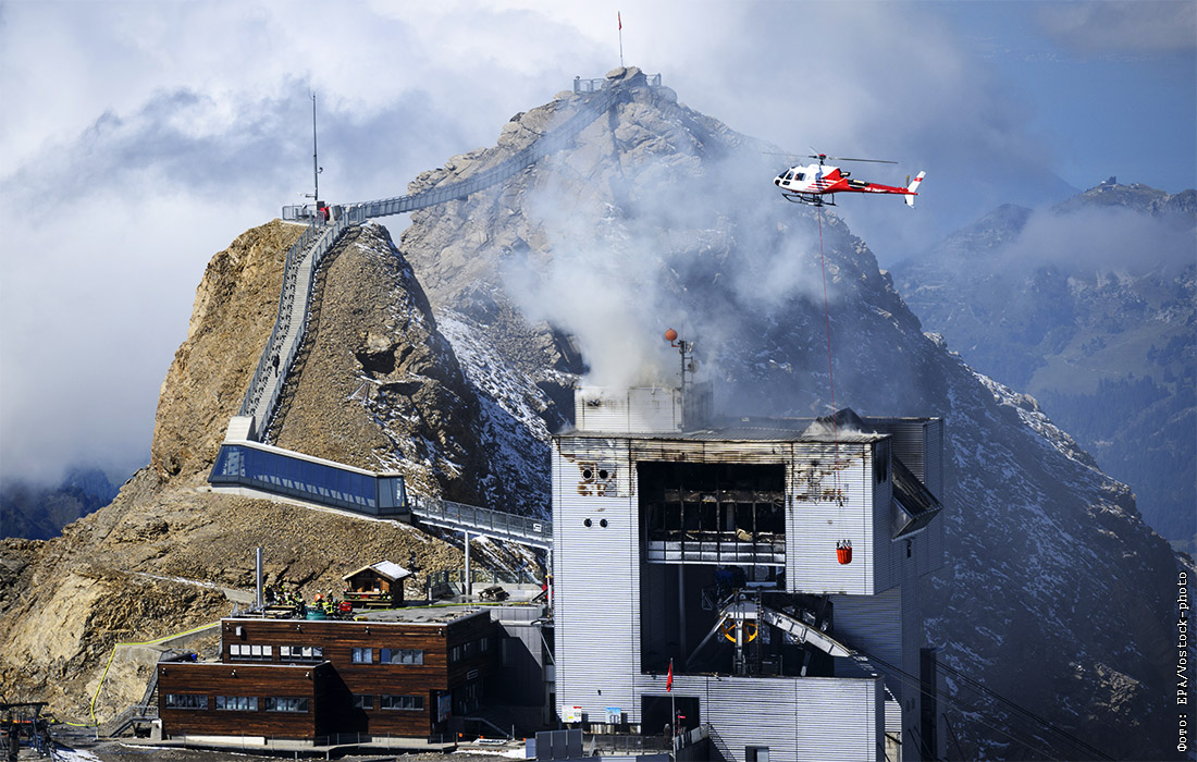 Ресторан Ботта, расположенный на высоте около трех километров над уровнем моря и спроектированный одноименным архитектором, сгорел в Швейцарии