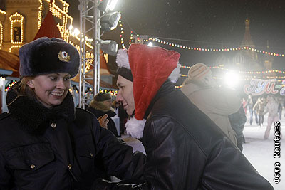 В праздничных гуляниях в центре Москвы в новогоднюю ночь принимали участие более 100 тысяч человек