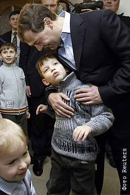 Президент РФ Дмитрий Медведев приехал в среду, в праздник Рождества Христова, в школу-интернат имени Преподобного Сергия, расположенную в селе Топорково недалеко от Сергиева Посада (около 60 км от Москвы).