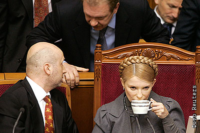 Первый вице-премьер Украины Александр Турчинов и премьер-министр Украины Юлия Тимошенко на заседании Верховной Рады Украины, посвященном вопросам транзита газа