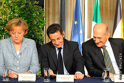 Ангела Меркель, Николя Саркози и Эхуд Ольмерт на пресс-конференции в Иерусалиме