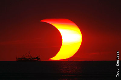 В Индийском океане сегодня можно было наблюдать кольцевое солнечное затмение