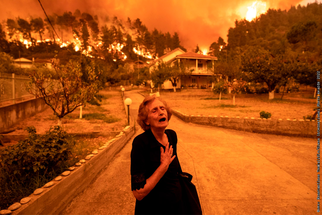 Лауреат премии "Фотография года". Реакция пожилой женщины на лесной пожар, приближающийся к ее дому на острове Эвия (Греция).