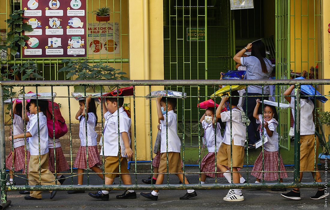 Учащиеся отрабатывают процедуры эвакуации при землетрясении во время учений на Филиппинах