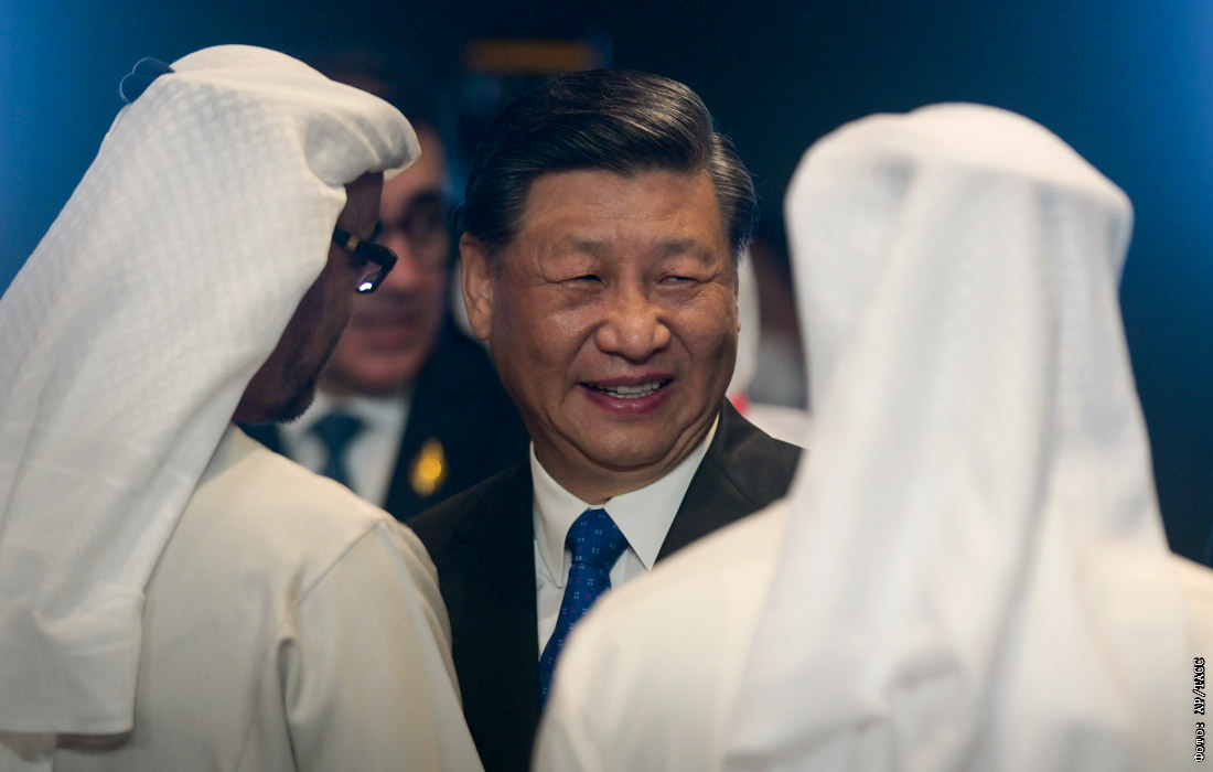 Председатель КНР Си Цзиньпин (в центре) и президент Объединенных Арабских Эмиратов шейх Мохаммед бин Зайд аль-Нахайян (справа)