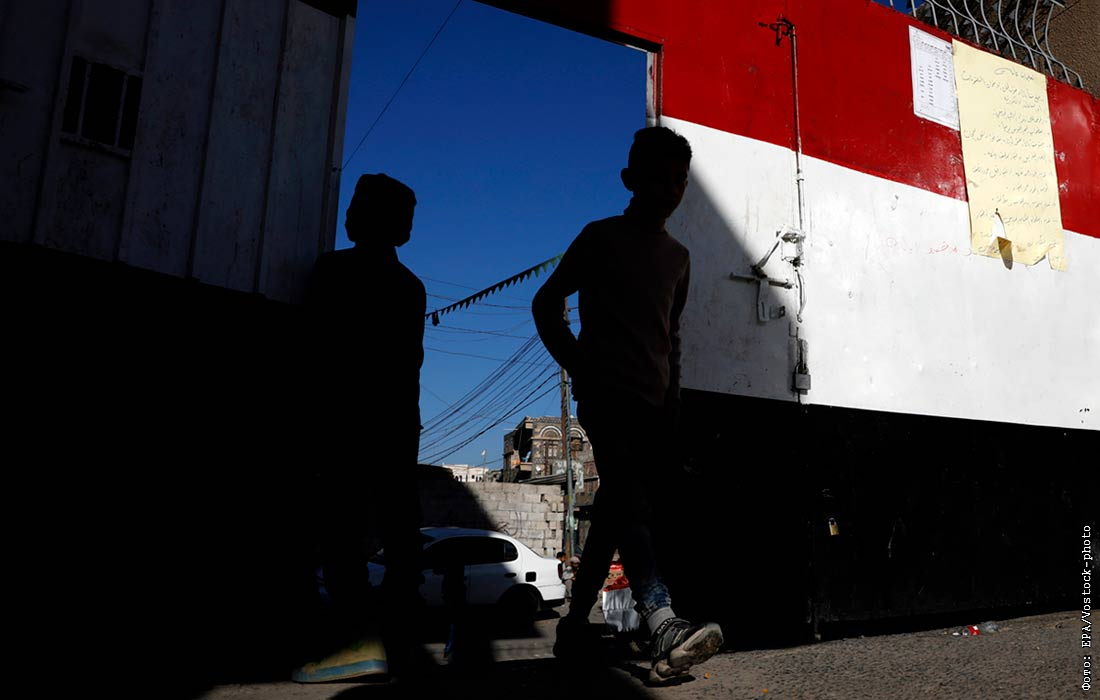 Йеменские ученики собираются перед промежуточным экзаменом в государственной школе в Сане
