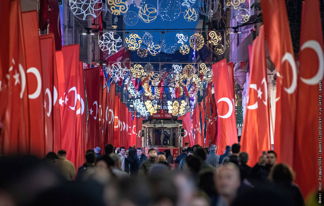 Более тысячи национальных флагов Турции вывесили вдоль пешеходной улицы Истикляль в центре Стамбула, где в минувшее воскресенье был совершен теракт