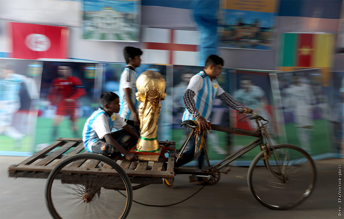 Индийские фанаты сборной Португалии решили украсить Калькутту копией кубка ФИФА