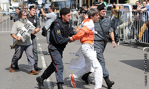 Задержание участников акции в поддержку панк-группы "Pussy Riot" у Хамовнического суда.