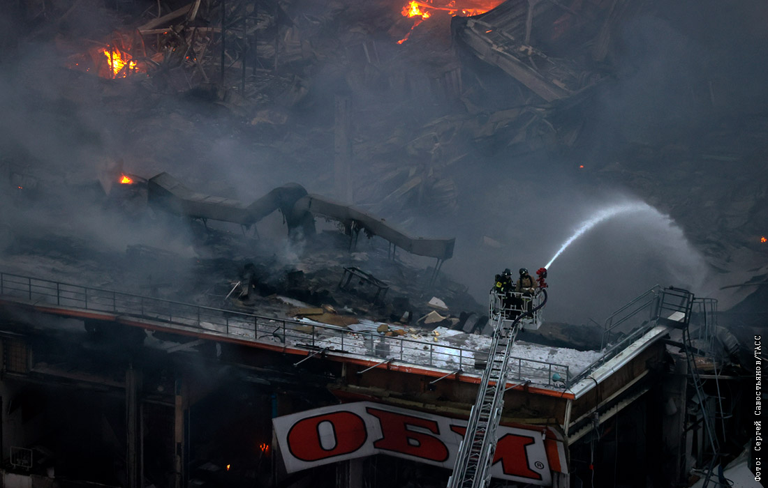 Крупный пожар произошел в гипермаркете "OBI" в торговом комплексе "Мега Химки" в Подмосковье