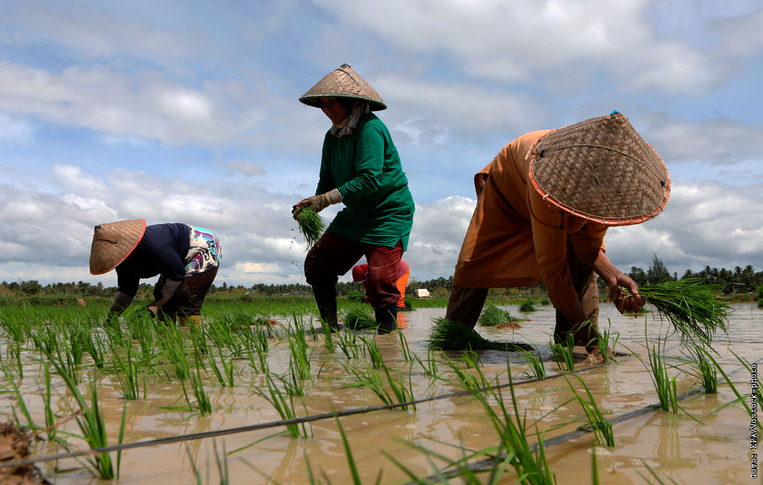 Сезон посадки риса в Индонезии