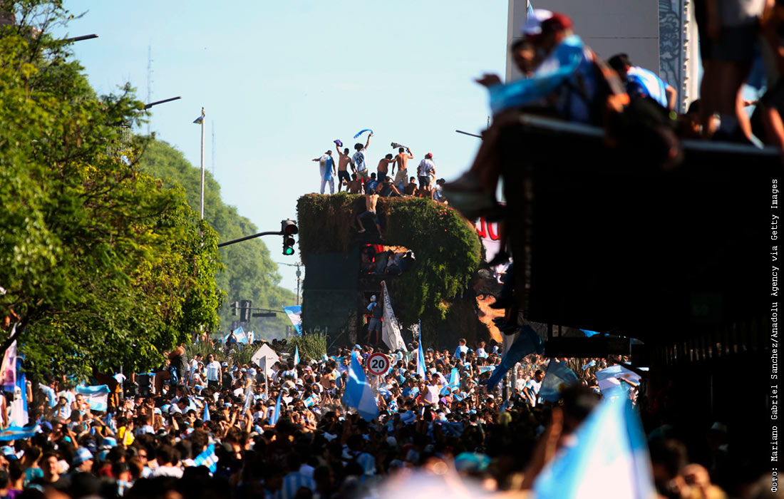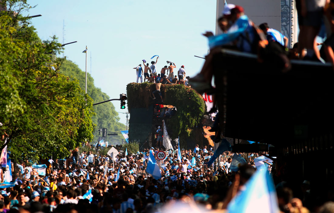 Тысячи болельщиков собрались в центре Буэнос-Айреса, чтобы отметить победу на чемпионате мира по футболу. Сборная Аргентины стала трехкратным чемпионом мира, обыграв в финале Францию в серии пенальти.
