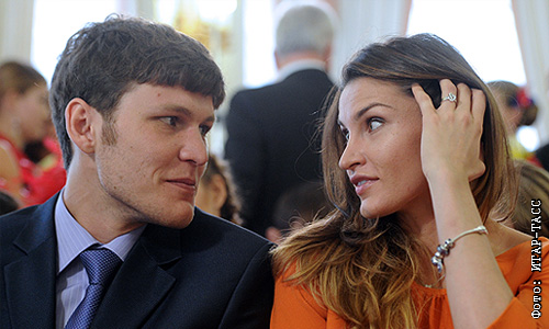 Российские спортсмены по прыжкам в высоту Иван Ухов и Анна Чичерова на церемонии вручения премий победителям и призерам Олимпийских игр 2012 в Лондоне.