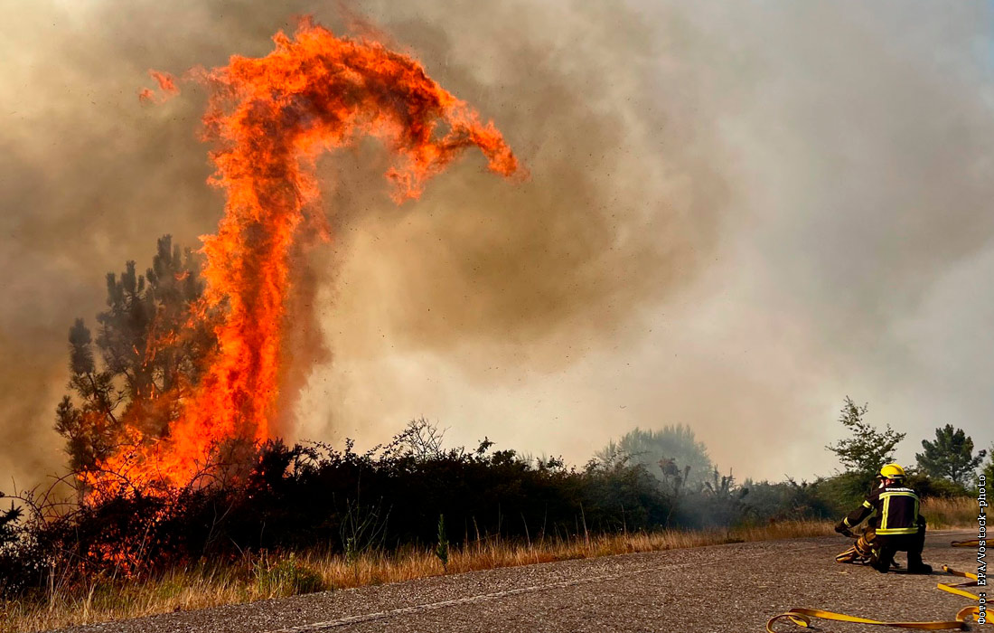 Тушение лесного пожара в регионе Галисия, Испания