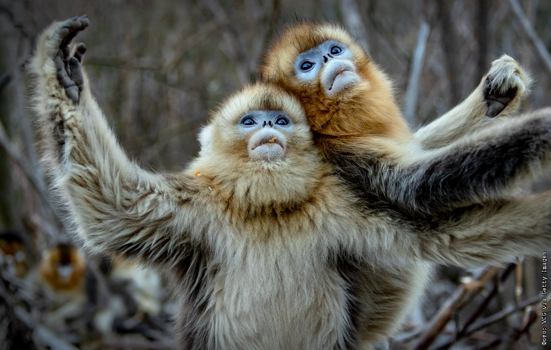 Золотистые курносые обезьяны в природном заповеднике Байхэ, Китай