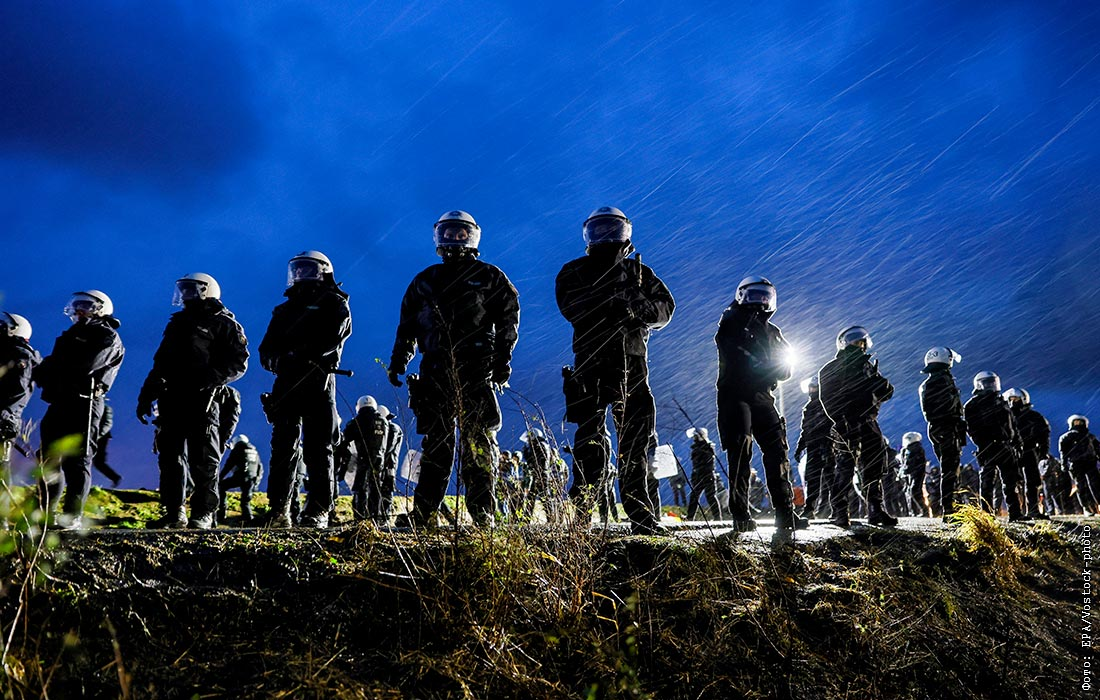 Немецкая полиция охраняет карьер от протестующих недалеко от деревни Лютцерат