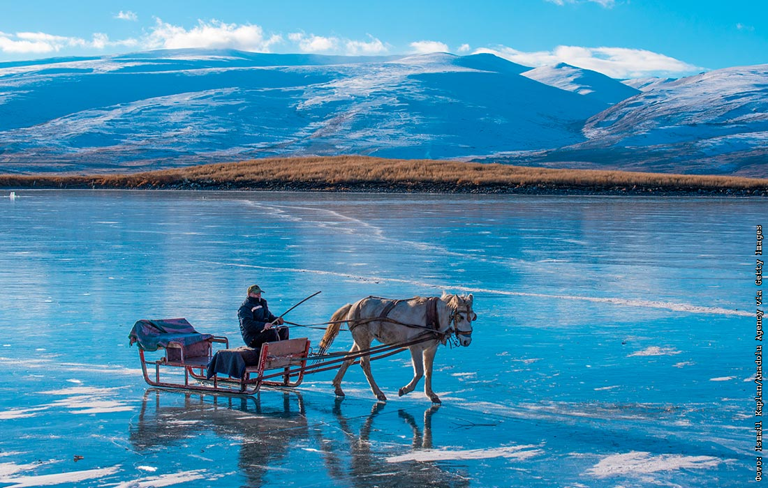 Частично замерзшее озеро Чылдыр в турецком Карсе