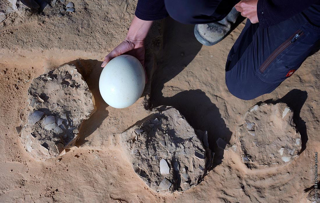 Фрагменты 4000-летних страусиных яиц, найденные в пустыне недалеко от границы с Египтом в Израиле