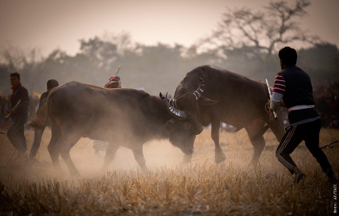 Традиционный бой буйволов в индийском штате Ассам