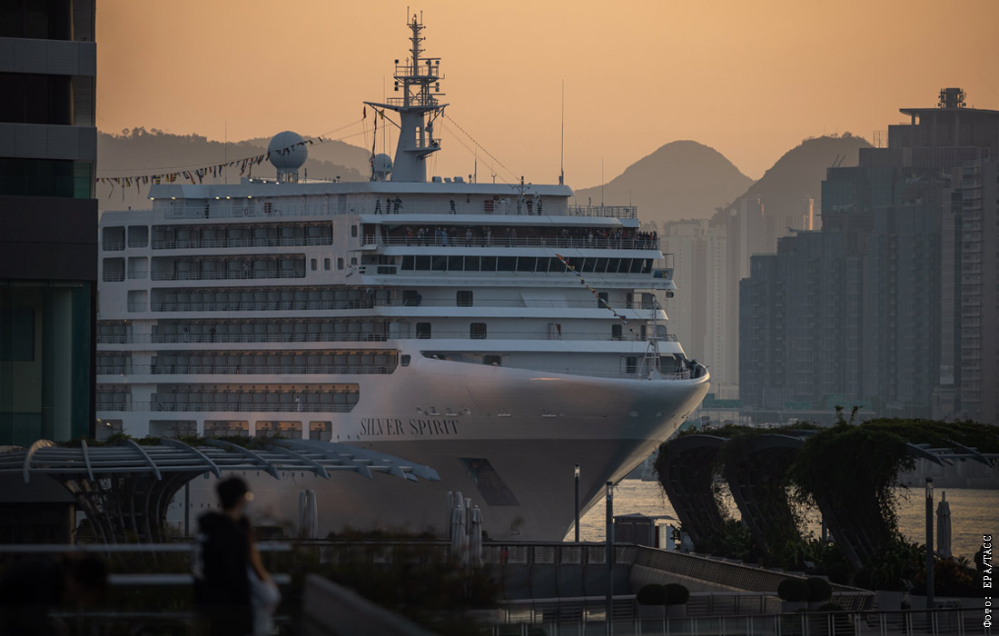 Первый за три года круизный лайнер Silver Spirit зашел в порт Гонконга после ослабления ковидных ограничений