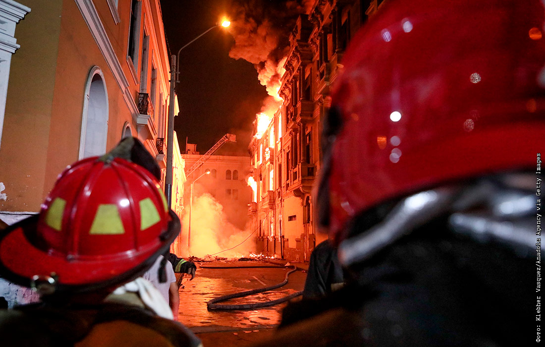 В столице Перу Лиме днем 19 января прошли манифестации с требованиями отставки президента Дины Болуарте, роспуска Конгресса и проведения досрочных выборов. Сначала протесты проходили относительно мирно и сопровождались отдельными стычками с полицией, которая применяла слезоточивый газ. Но после заката ситуация обострилась, столкновений стало больше, а рядом с исторической площадью Святого Мартина в одном из зданий произошел крупный пожар.