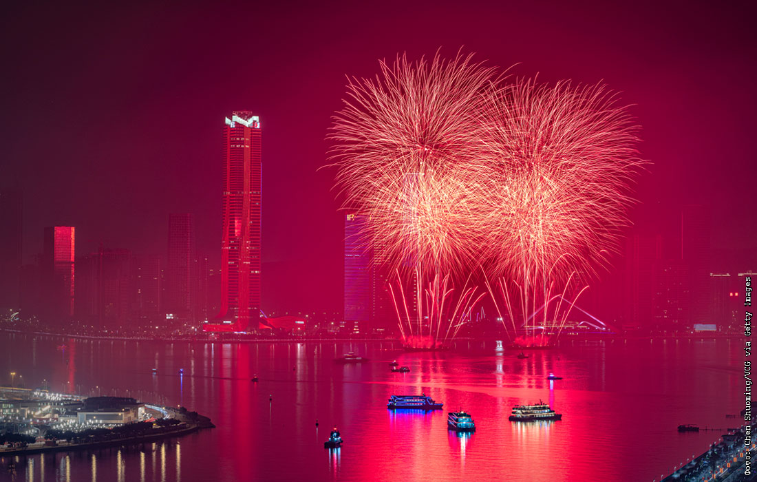Фейерверк в честь Праздника весны в китайском Чжухае