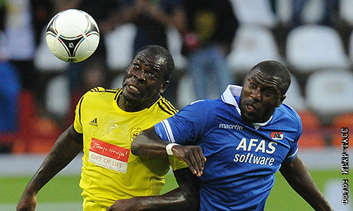 Игроки команд "Анжи" Кристофер Самба и "АЗ Алкмар" Жози Алтидор (слева направо) в матче Лиги Европы по футболу: "Анжи" (Махачкала, Россия) - "АЗ Алкмар" (Алкмар, Нидерланды).