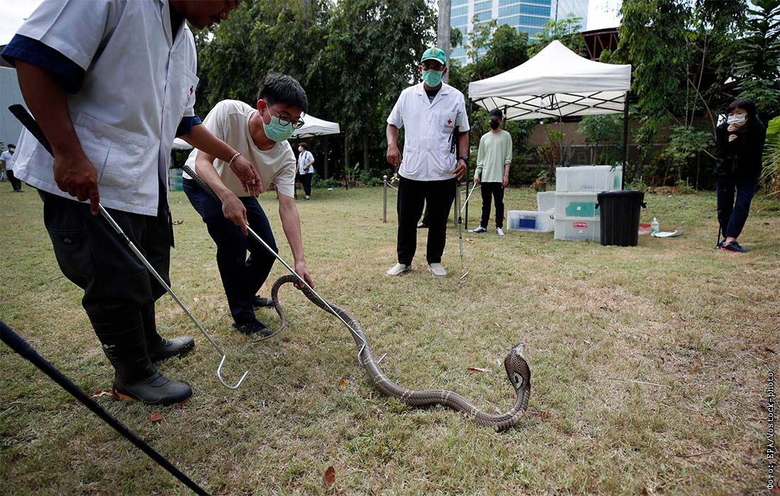 В Бангкоке провели открытый урок по обращению со змеями