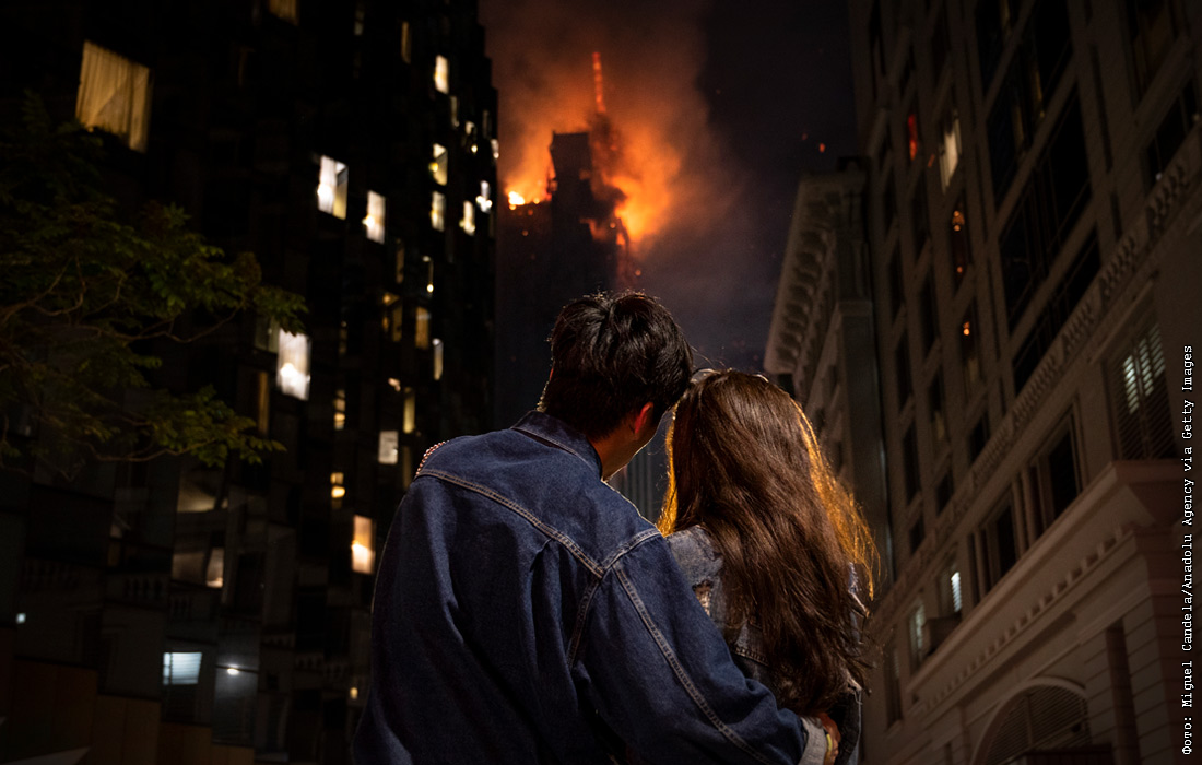 Строящийся небоскреб загорелся в крупном туристическом районе Гонконга