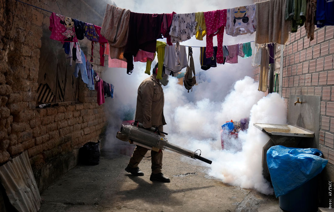 В боливийском городе Каранави проходит дезинфекция улиц в рамках борьбы с лихорадкой Денге