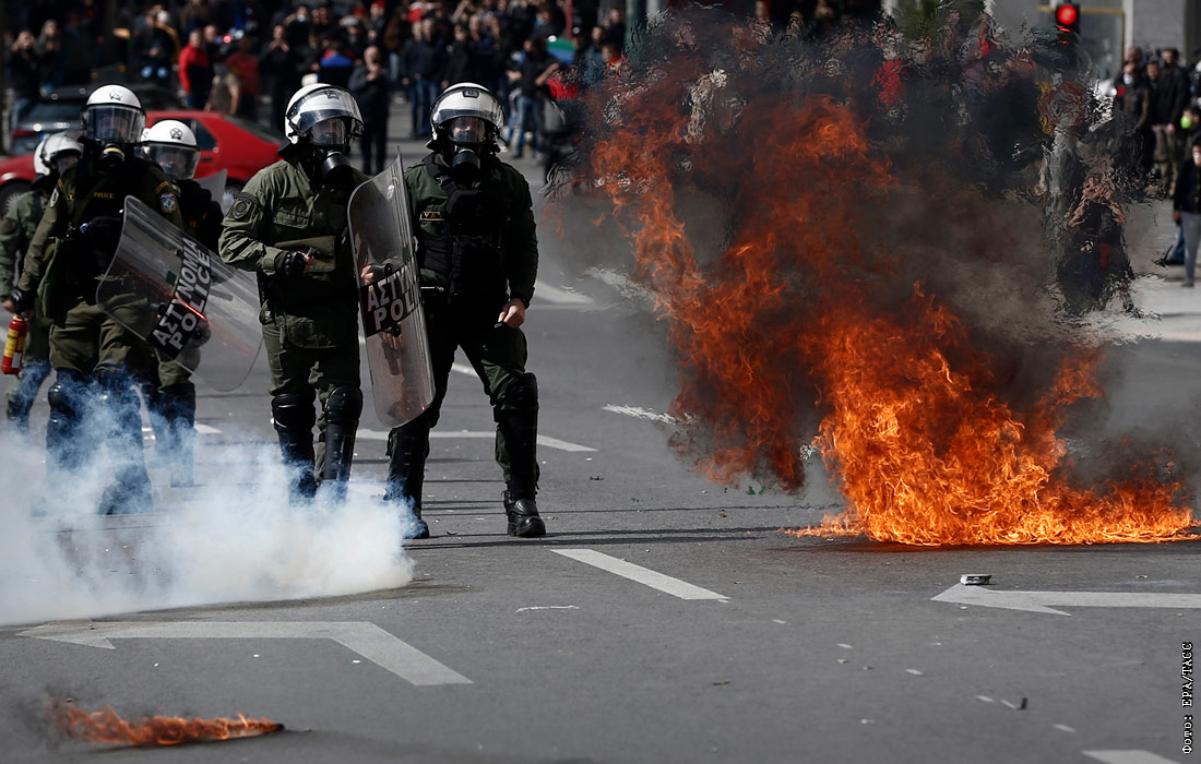 Полиция и манифестанты, требующие наказать виновных в крупнейшей в истории Греции железнодорожной катастрофе, в воскресенье вступили в столкновения в Афинах у здания парламента