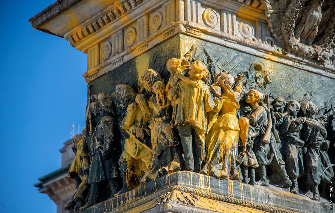 Экоактивисты осквернили монумент Виктору Эммануилу на площади Дуомо в Милане