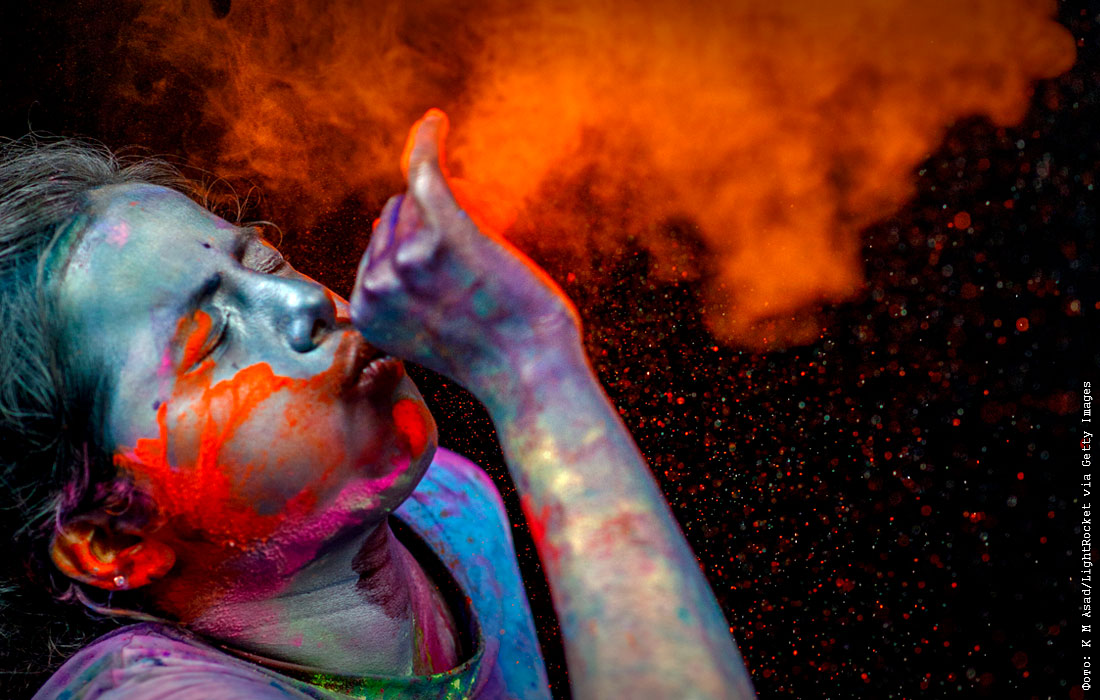 Празднование фестиваля красок Холи в Дакке, Бангладеш