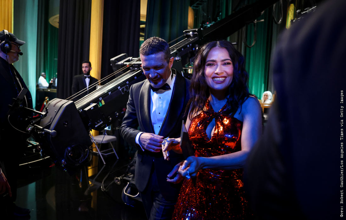 Антонио Бандерас и Сальма Хайек за кулисами 95-й церемонии вручения премии "Оскар"