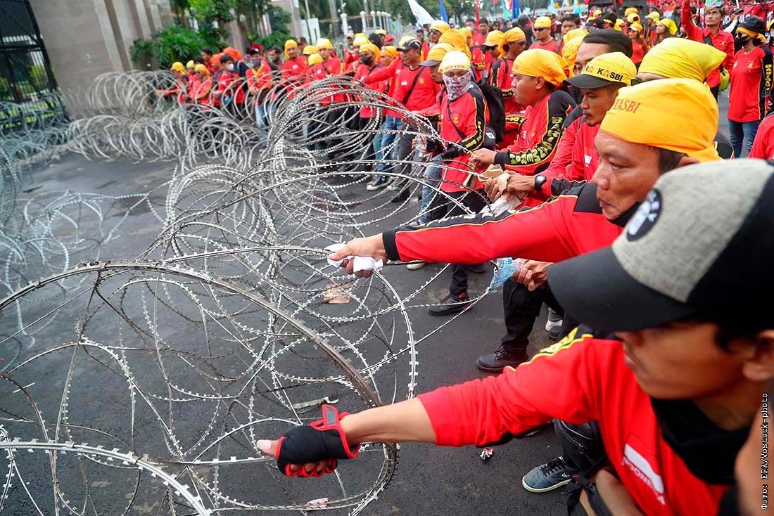 В Индонезии рабочие вышли протестовать против изменения трудового законодательства