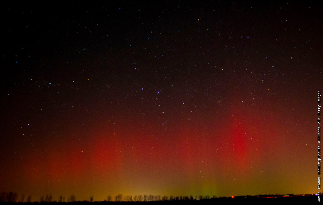 Северное сияние в небе на окраине Магдебурга в Германии