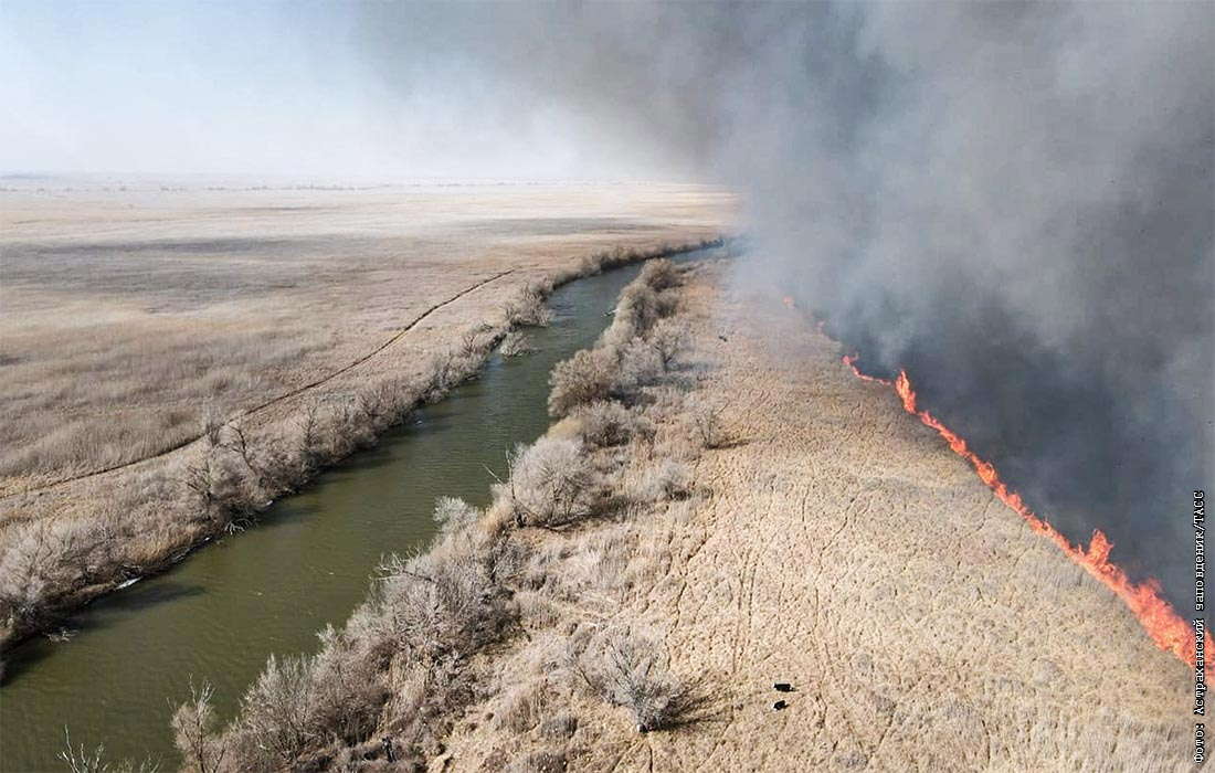 Пожар продолжается на Обжоровском участке Астраханского биосферного заповедника. Площадь пожара увеличилась до 8 тыс. га., сложная пожароопасная обстановка наблюдается по всей территории дельты Волги с 13 марта.